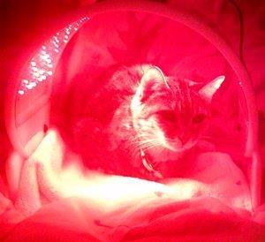 Animals naturally gravitate toward the our light. Here is a picture of Princess Grace having one of her numerous daily "beauty" and healing treatments. We were all at her beck and call to answer a very distinct "MEOW!" which meant turn it on already!